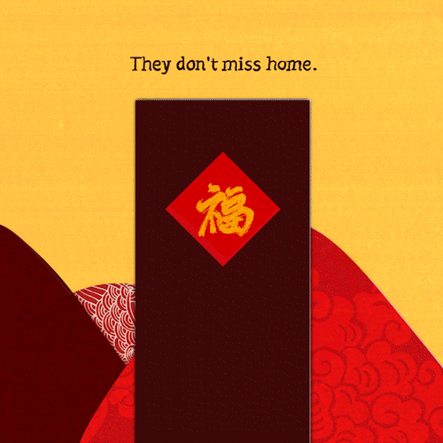 Guardian Angel is an instagram campaign that supports Left Behind Children in China. Through telling a story inspired by traditional papercutting and Chinese shadow puppets, it raises funds for left behind children and their families to connect more often. The Color Palette is heavily influenced by Chinese New Year as it is the setting of the story. Certain patterns within the campaign represent "Unity" and "rising high above to go home" and "good fortunes".